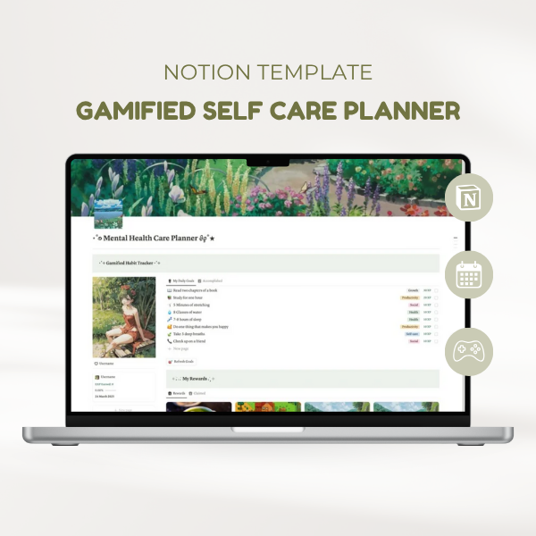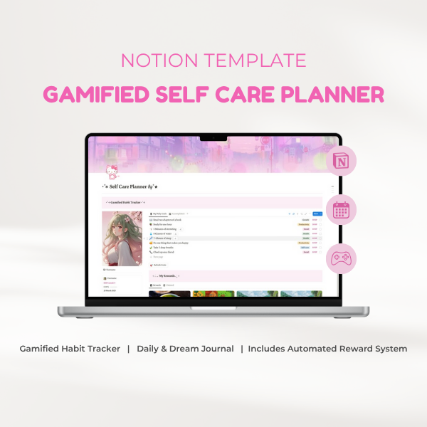 Gamified Habit Tracker Self Care Notion Planner