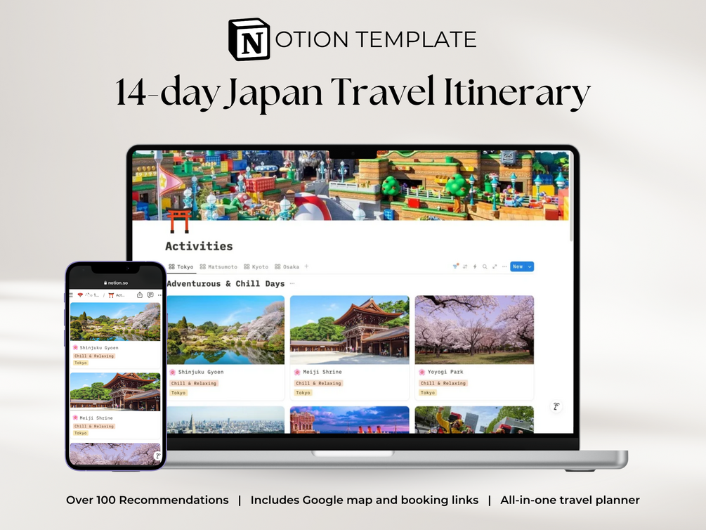 Our 14-day Notion Japan travel planner is perfect for first time visitors to Japan. If you are looking for a well researched itinerary, this is the perfect Japan travel planner for you.