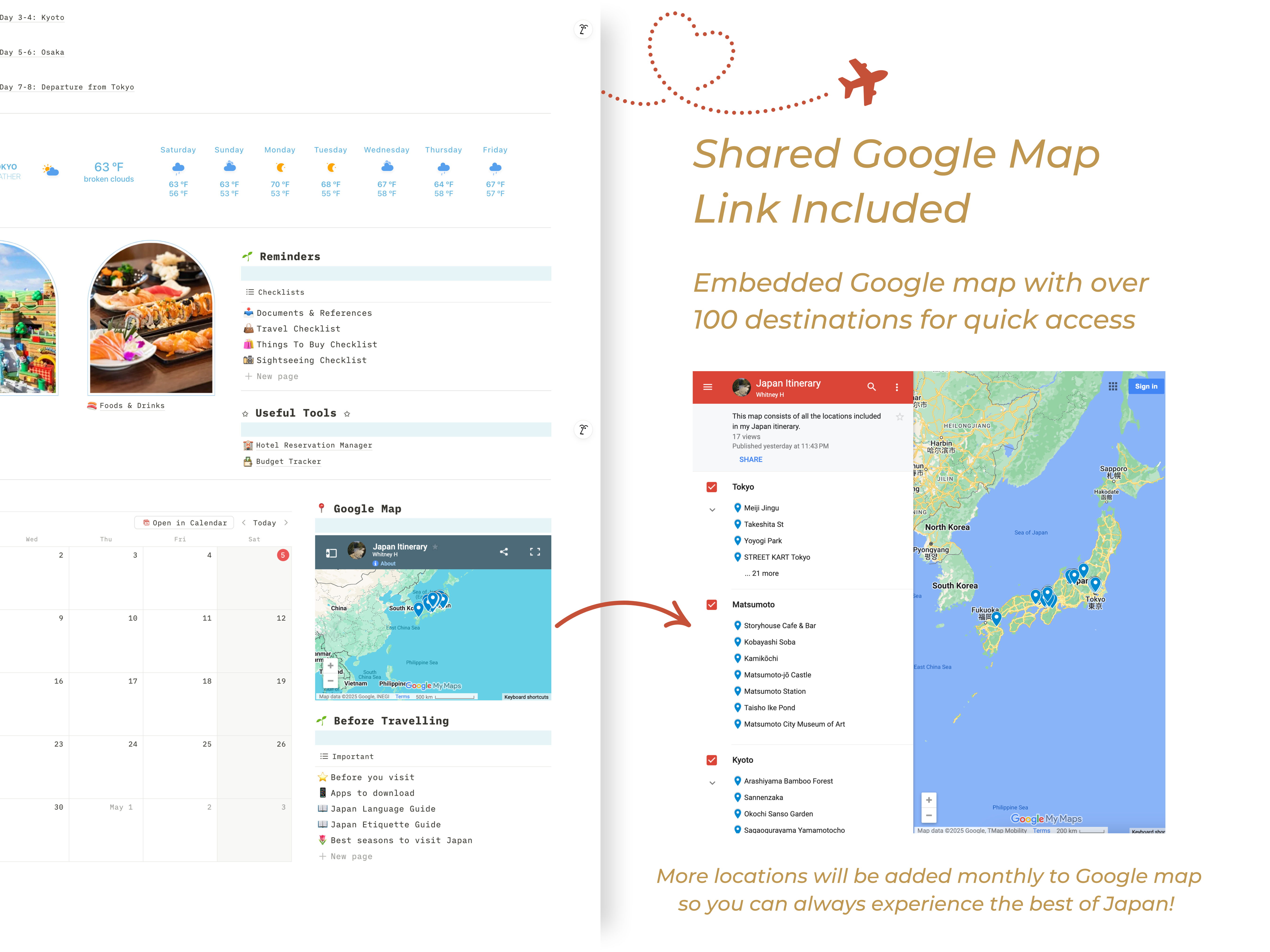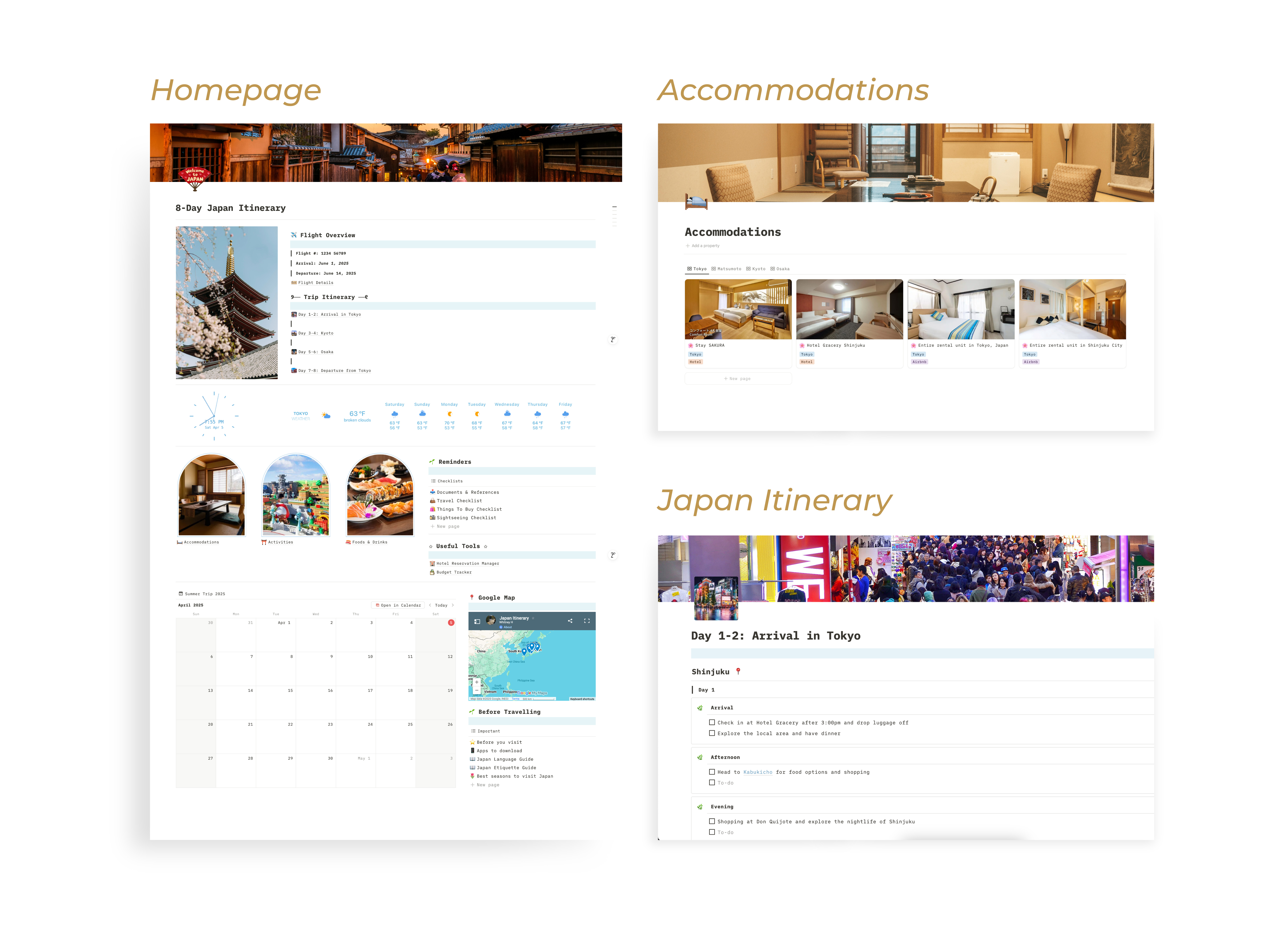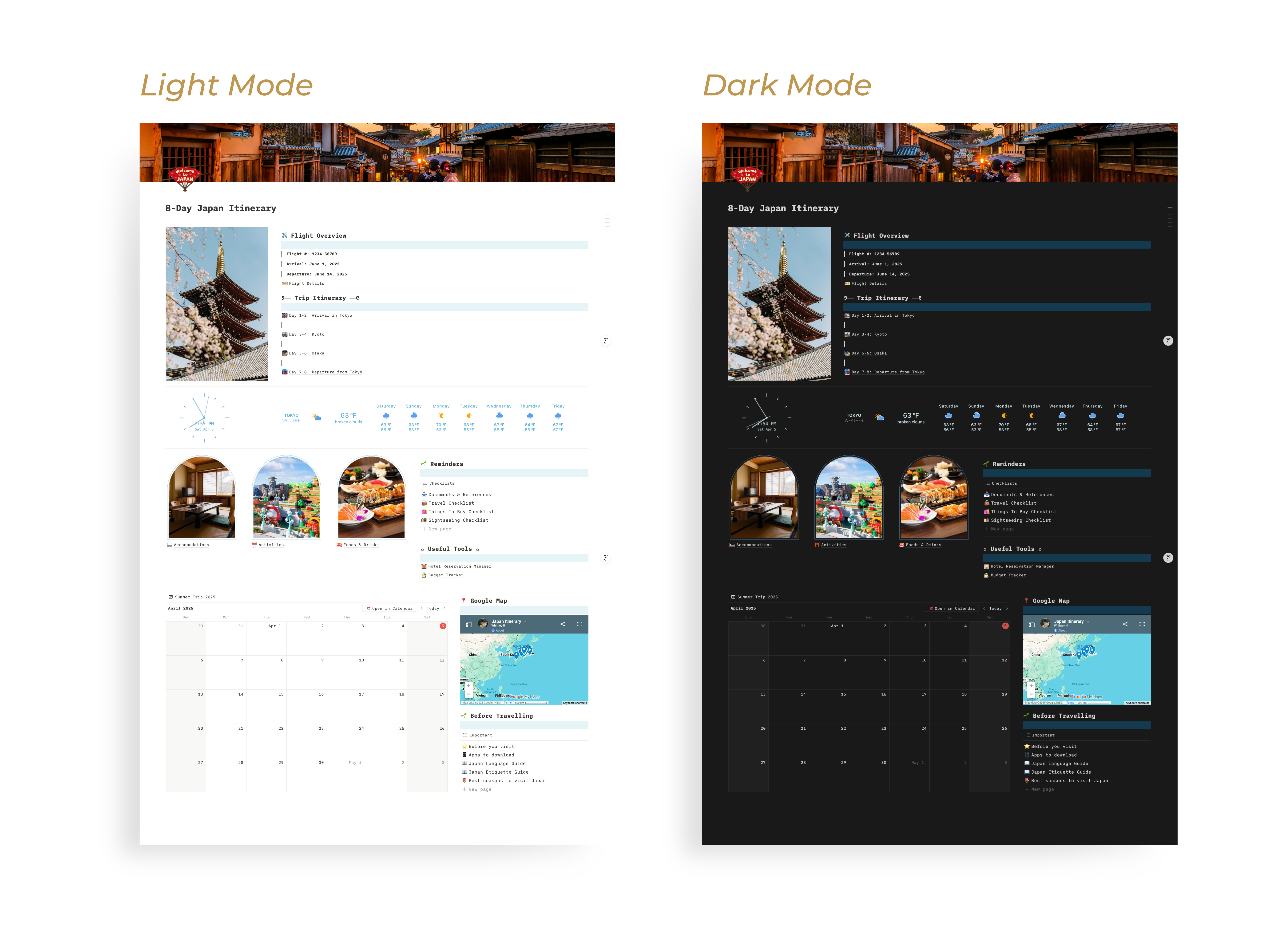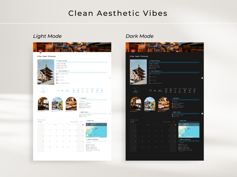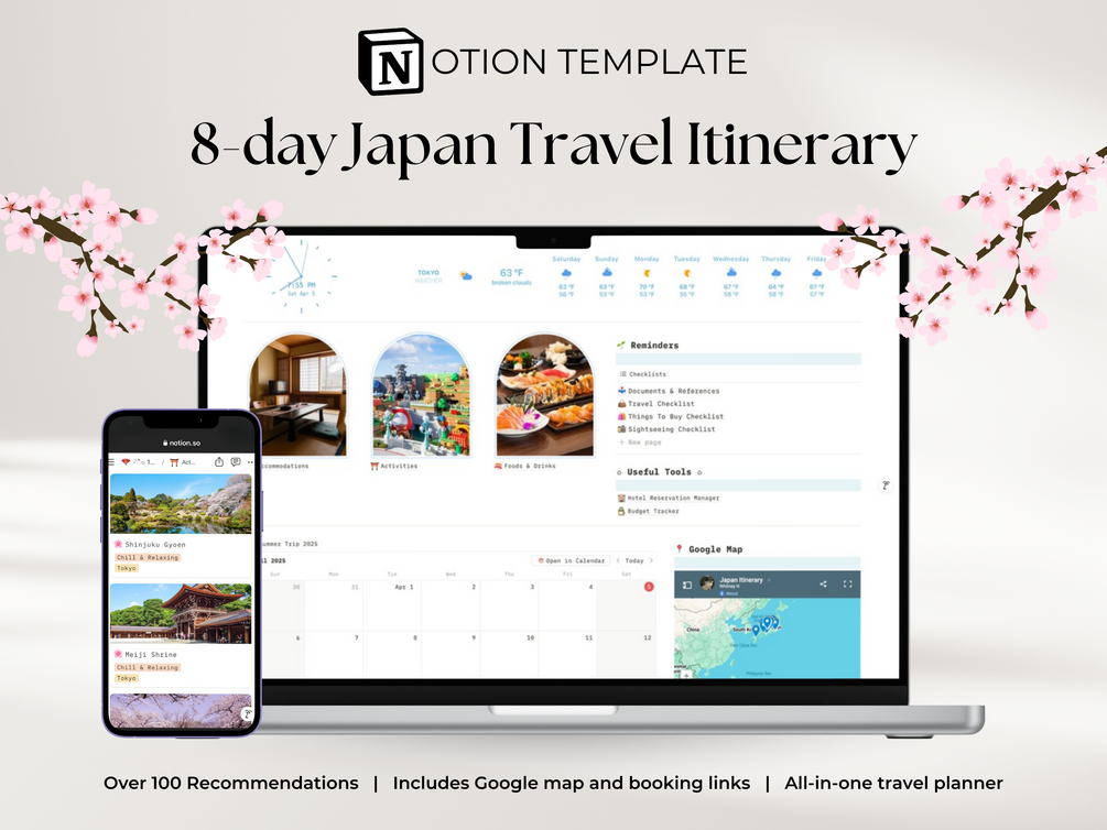8-Day Japan Itinerary Notion Travel Planner