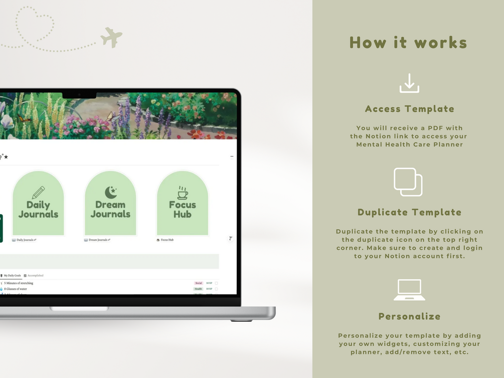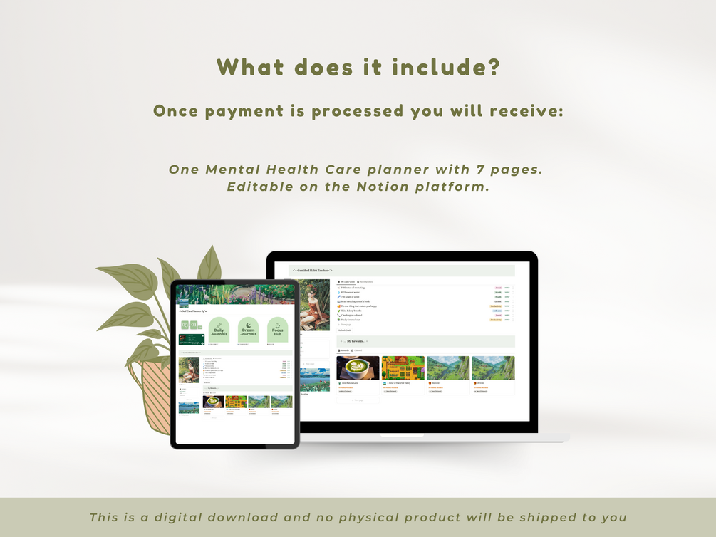 One PDF file containing the Notion link to access your Mental Health Care Planner