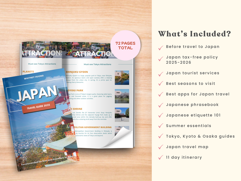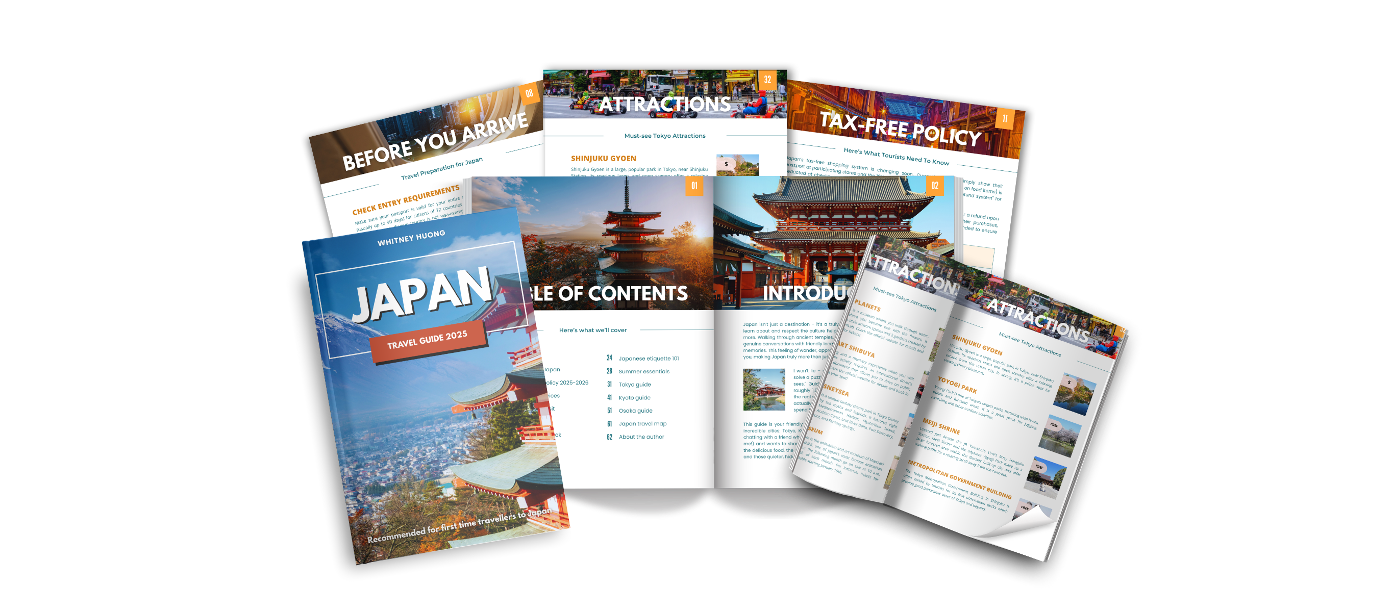 This all-in-one Japan travel guide covers everything you need—what to prepare before your trip, the new tax-free policy, must-have apps, cultural tips, seasonal travel advice, and local guides for Tokyo, Kyoto, and Osaka. It also includes a phrasebook, travel map, and insider recommendations to help you feel confident and ready to explore.