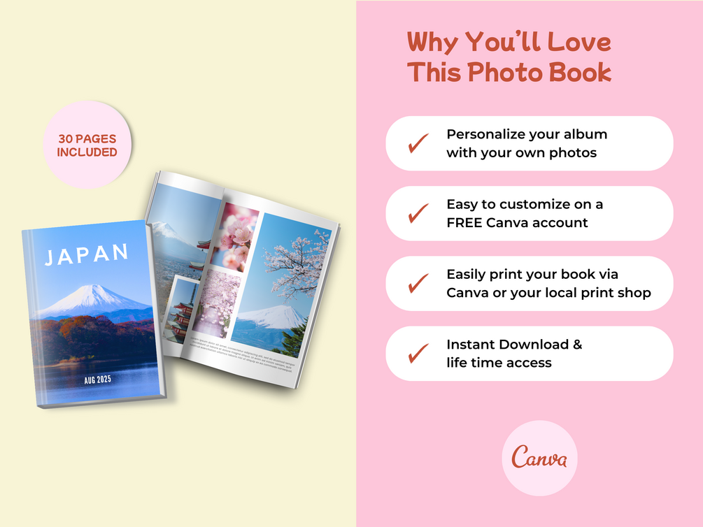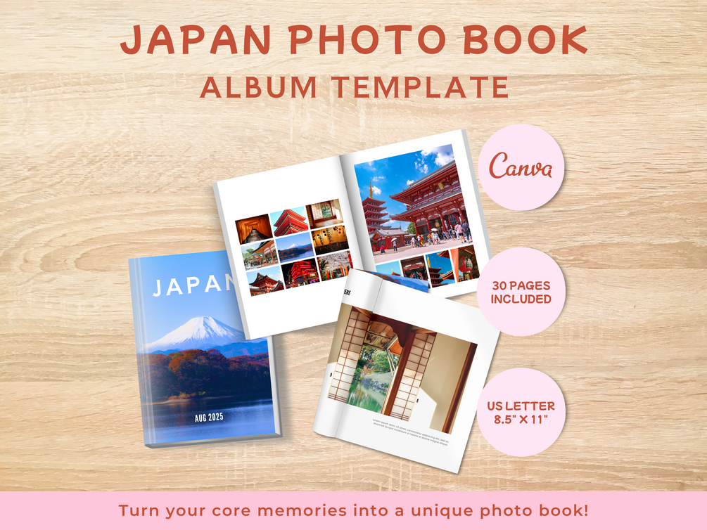 Ready to turn core memories from your Japan trip into a beautiful coffee table photo album? Customize your Japan travel photo album with our unique photo book template!
